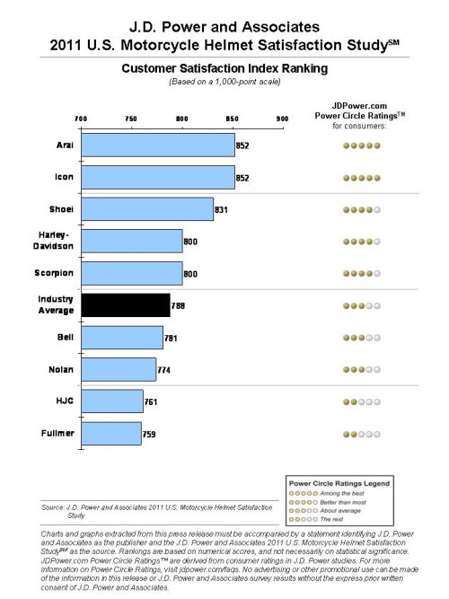 Arai and Icon Tie to Rank Highest in Customer Satisfaction with Motorcycle Helmets