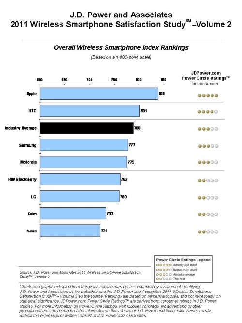 "It's not unexpected that satisfaction is higher for devices that have new technological advances or features," said Kirk Parsons, senior director of wireless services at J.D. Power and Associates. "Having the right combination of physical dimensions and operating functions and features for both smartphones and traditionally equipped devices is key to creating an exceptional ownership experience with each type of wireless device."